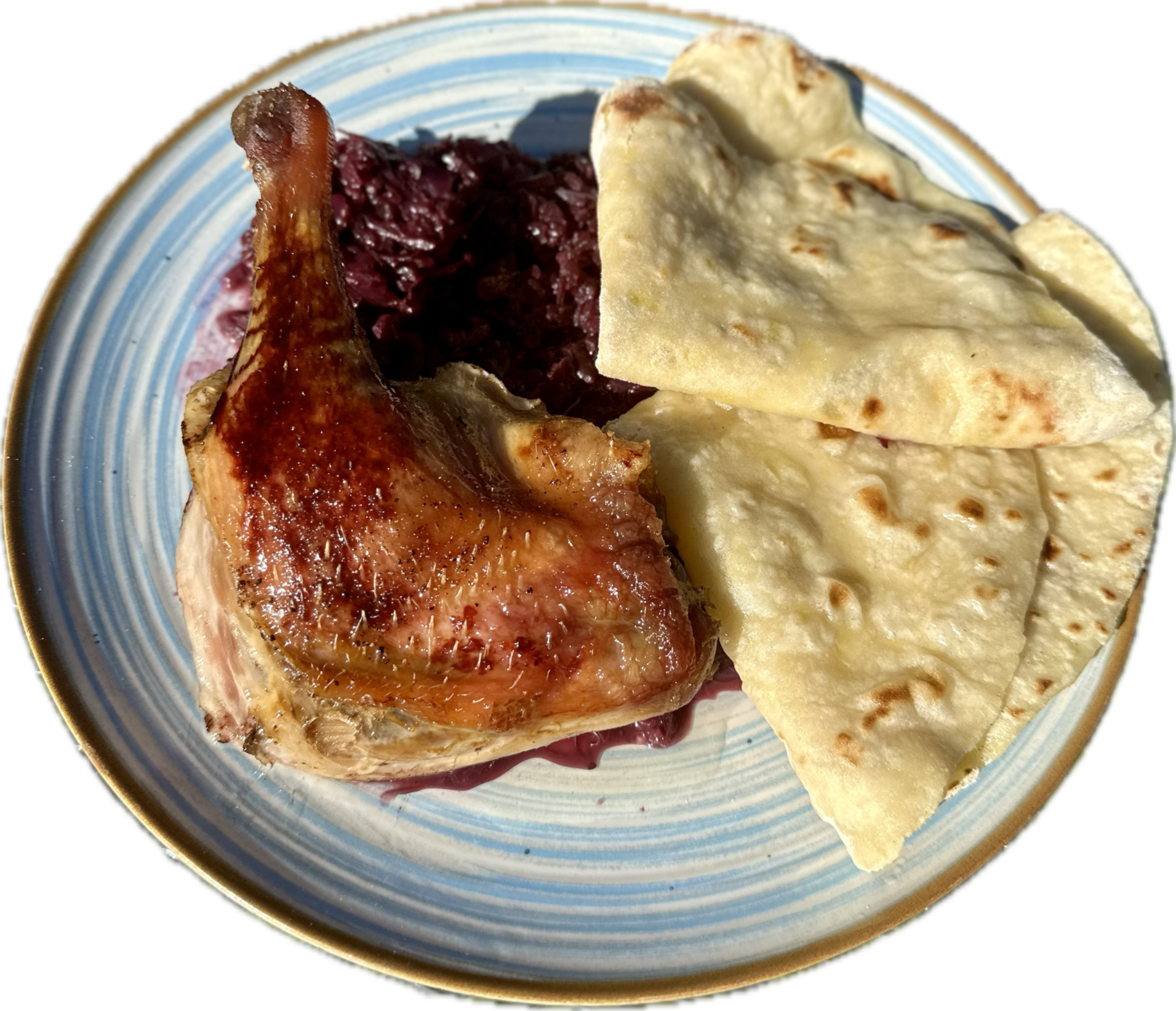 a kukuricou , cesnakový dresing, domáci tousťák 8,9€ 1,3,7