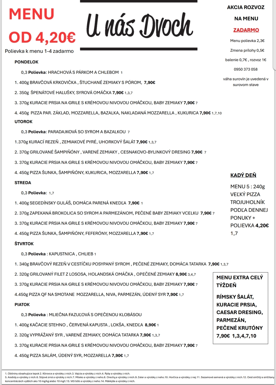 Rozvoz menu !!ZADARMO!! Stará Turá a okolie do 10km