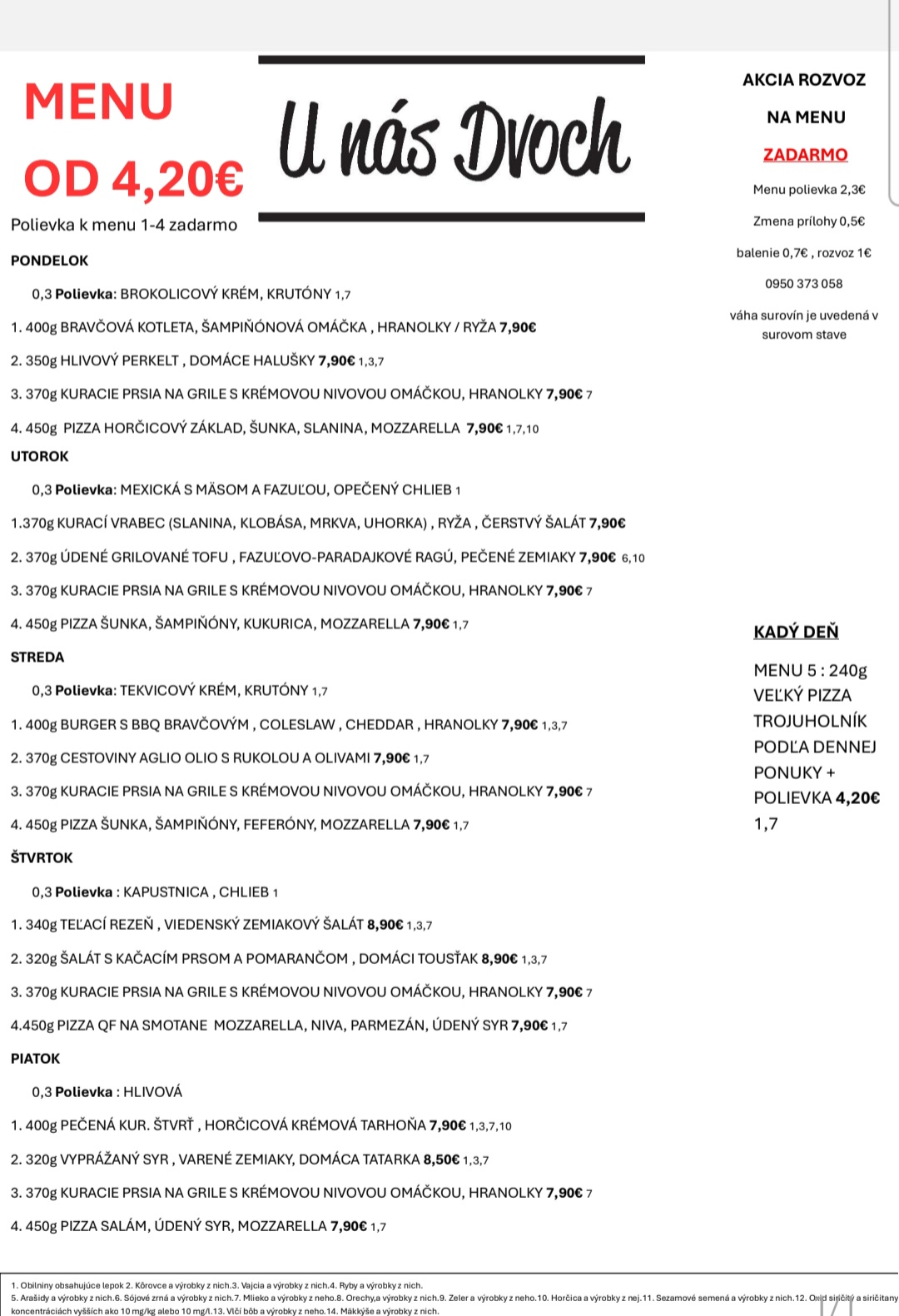 Rozvoz menu !!ZADARMO!! už len v marci Stará Turá a okolie do 10km