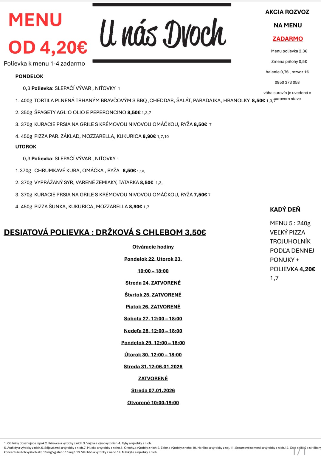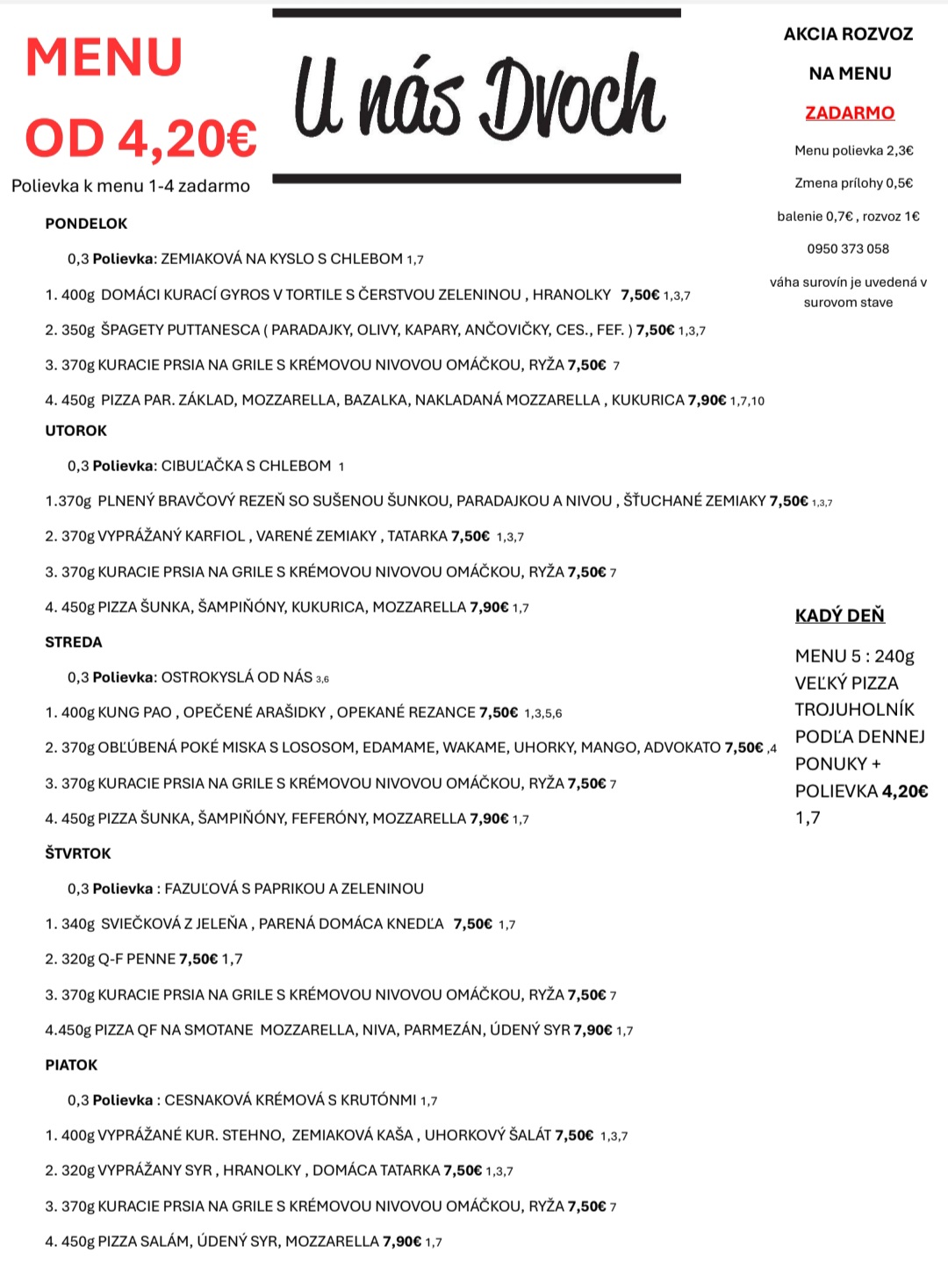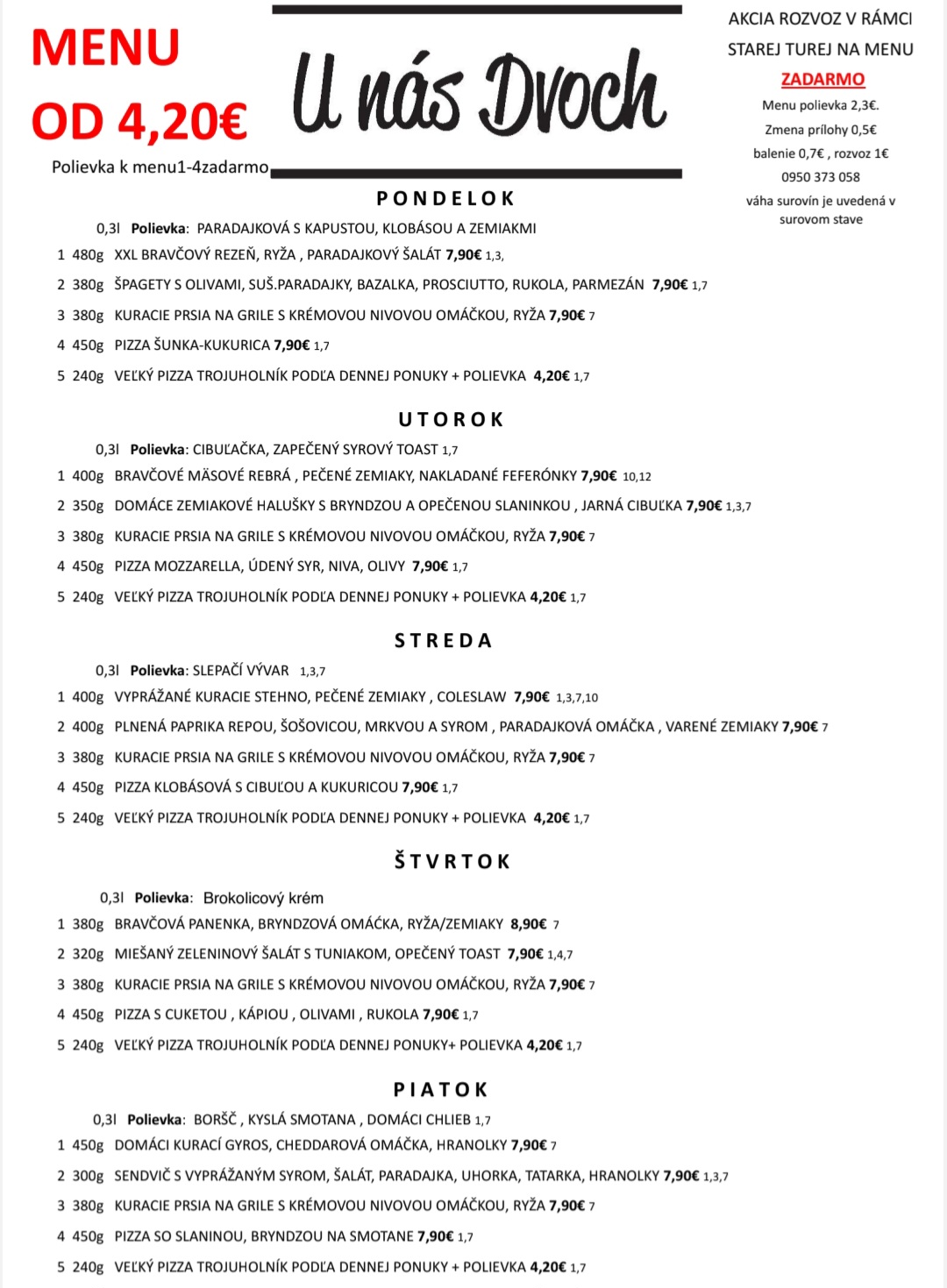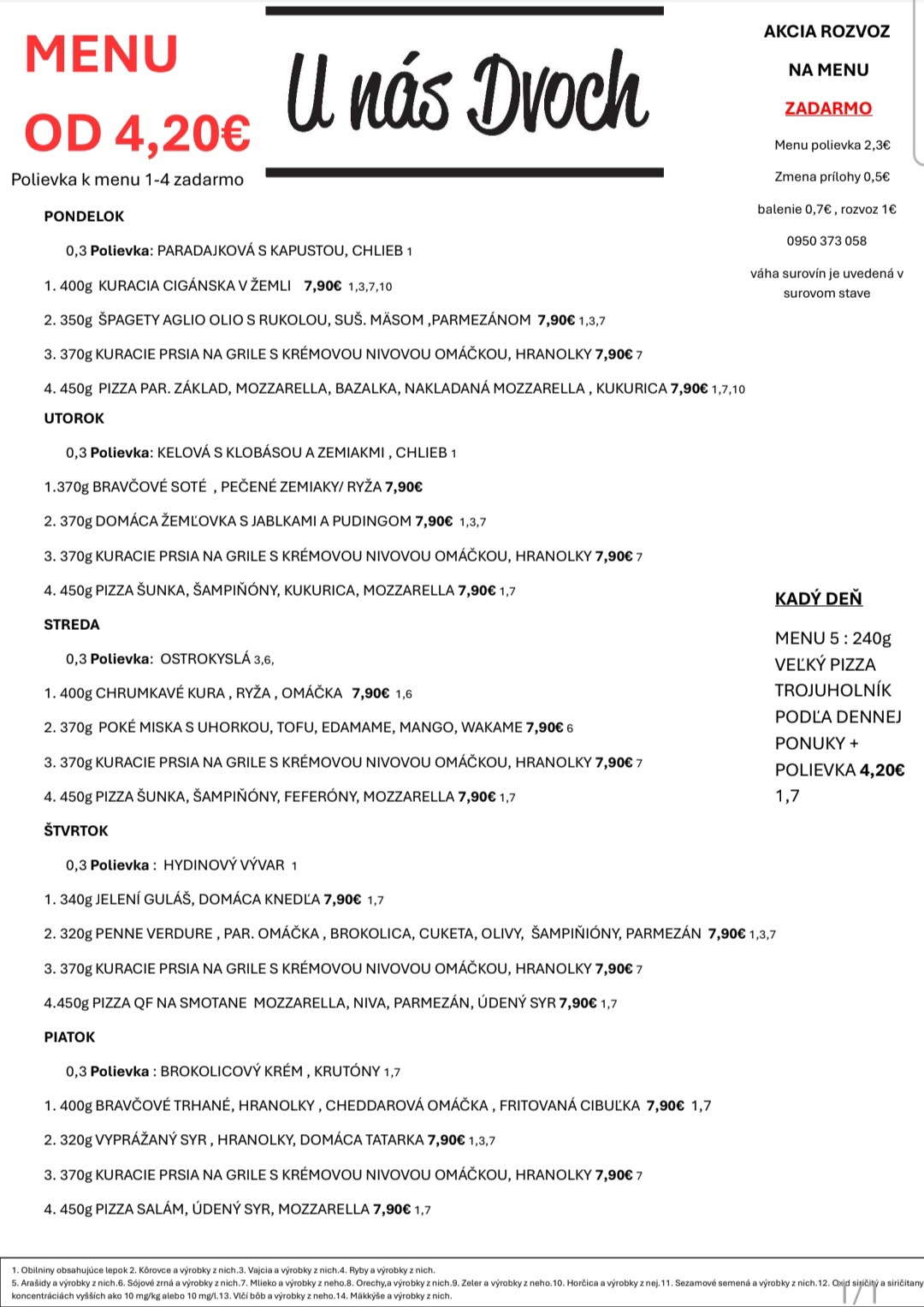 Rozvoz menu !!ZADARMO!! Stará Turá a okolie do 10km